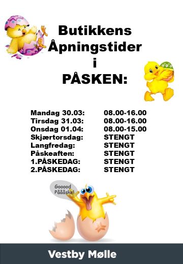 Kontakt oss for bestilling eller tilbud på telefon 64 98 06 40 eller post@vestbymolle.no.